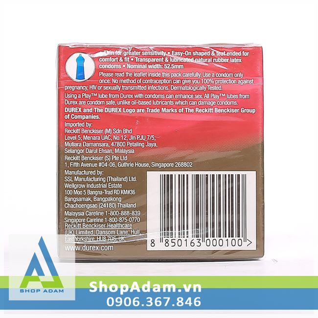 Shop Adam sửa chữa đã ký hợp đồng phân phối sản phẩm Bao cao su Durex tại Việt Nam to . Nên quý khách hàng hoàn toàn yên tâm mua bao cao su Durex chính hãng.
