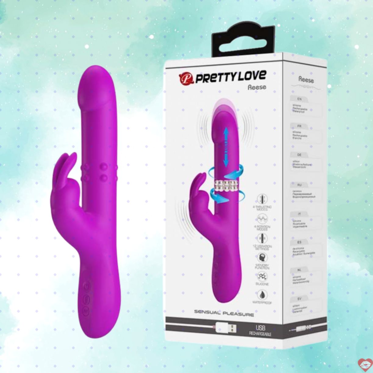 Dương vật giả tai thỏ Pretylove Reese Rung bi xoay thụt lên xuống là một sản phẩm thuộc top dương vật tai thỏ được ưa chuộng nhất của hãng với nhiều tính năng tối ưu hóa cao cho việc kích thích điểm G của chị em cả trong lẫn ngoài.