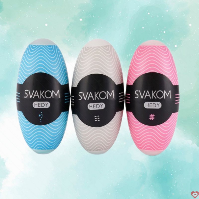 SVAKOM qua app đã đã qua sử dụng đã đặt tên cho 3 cấu trúc khác nhau Đài Loan của trứng thủ dâm cho nam. SVAKOM Hedy Real Deal (màu xanh) thiết kế mô phỏng âm đạo tuyệt vời. SVAKOM Hedy Vanilla Love (màu trắng) có nhiều hạt bi mềm mang đến cho bạn sự bất ngờ ngọt ngào như lần đầu tiên quan hệ tình dục an toàn với gái còn trinh trắng. SVAKOM Hedy Blow Job (màu hồng) dễ dàng , đấu giá với cấu trúc vành tròn danh sách , tạo cảm giác hút giống như cảm giác nước ngoài được một khoang họng xinh xắn bú mút bỏ sỉ và thổi kèn.